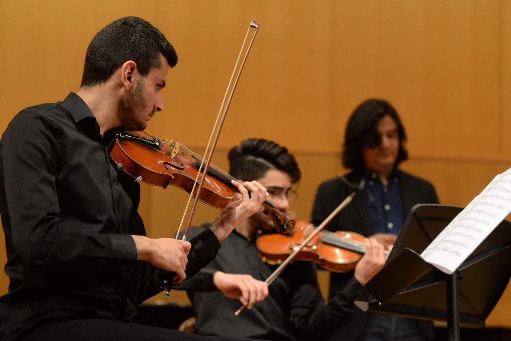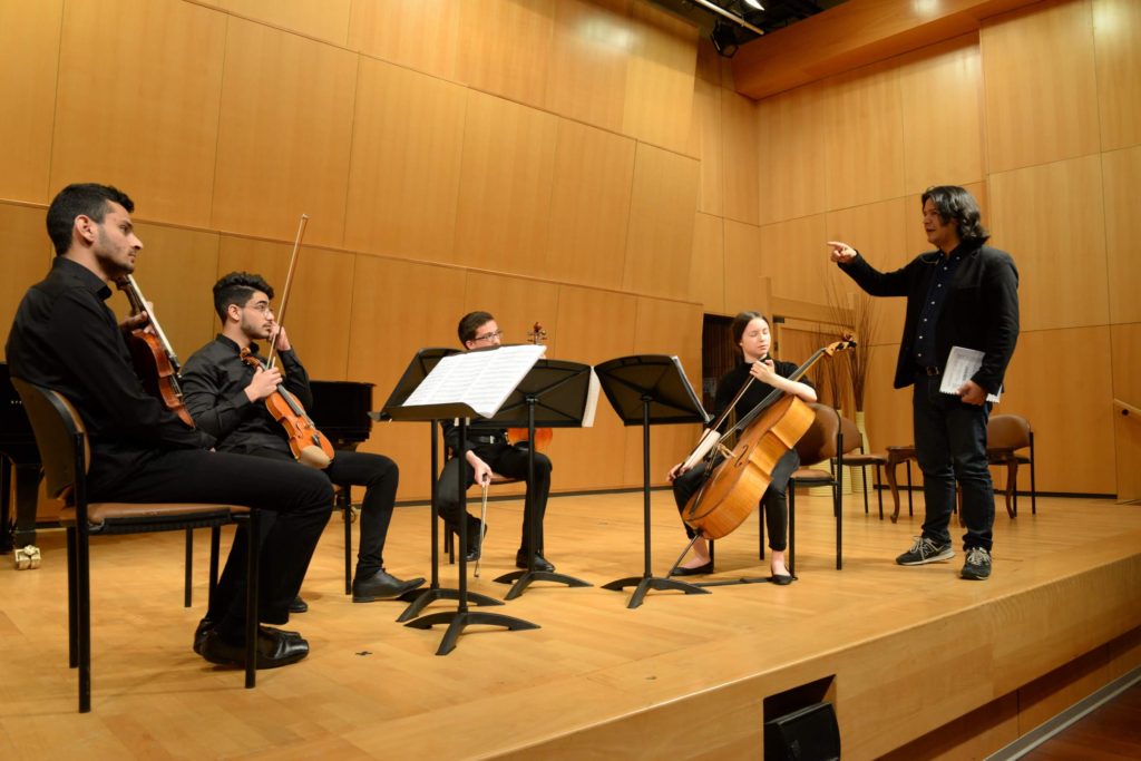 Violinists Ibrahim Boulos and Eesa Khehouri, violist Idan Hayat, and cellist Amalia Faibish came together to perform a piece by Schubert. In three short days, they met each other, rehearsed, and performed the piece. They worked on the piece in a masterclass with Claudio Bohórquez, world-renowned cellist, and had coaching sessions with Chaim Taub, former concertmaster of the Israeli Philharmonic Orchestra.